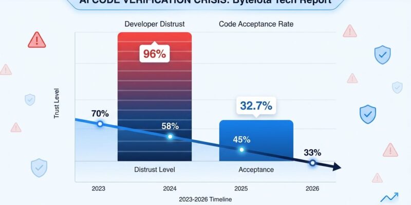 Sonar’s 2026 State of Code Developer Survey, polling 1,149 professional software developers globally in January 2026, reveals a critical AI verification bottleneck: while 90% of developers now use AI coding assistants and AI accounts for 42% of all committed code, 96% of developers do not fully trust the functional accuracy of AI-generated output. This trust gap has shifted the productivity burden from code generation—which AI accelerates—to code verification and debugging. The time saved writing code gets consumed verifying its correctness.