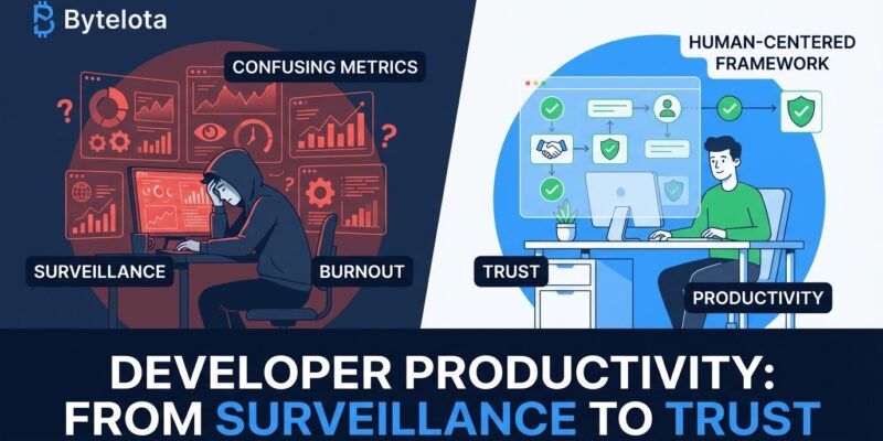 Martin Fowler’s Humans Over Metrics framework emphasizes outcomes over activity, measuring systems rather than individuals through developer self-report surveys, regular retrospectives, and qualitative assessment alongside quantitative data. The guiding principle across all successful frameworks: measure systems, not individuals; measure outcomes, not activity; combine quantitative with qualitative; and act on feedback to build trust.