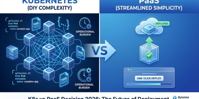 The cost comparison reveals why teams are reconsidering Kubernetes for standard workloads. The complexity was justified when PaaS platforms couldn’t deliver equivalent capabilities. That’s no longer true in 2026.