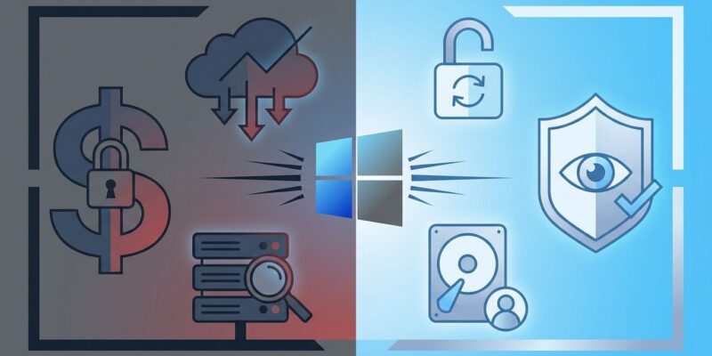 What does Microsoft gain from mandatory accounts? Three things: ecosystem lock-in through OneDrive and Microsoft 365 integration, user behavior tracking for product analytics and personalized advertising, and a direct subscription upsell path.